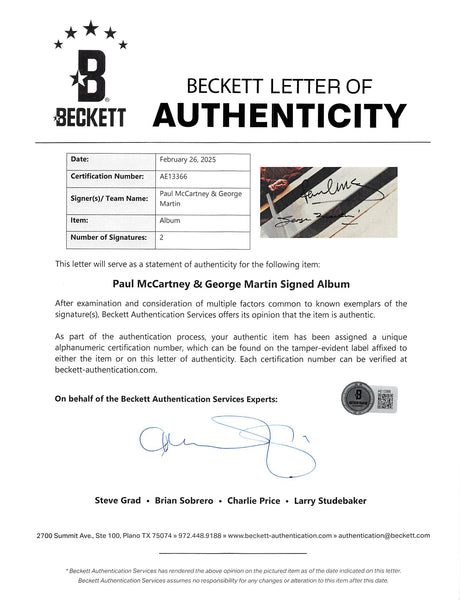 Paul McCartney & George Martin Beatles Signed 1962-1966 Album Cover W/ Vinyl BAS