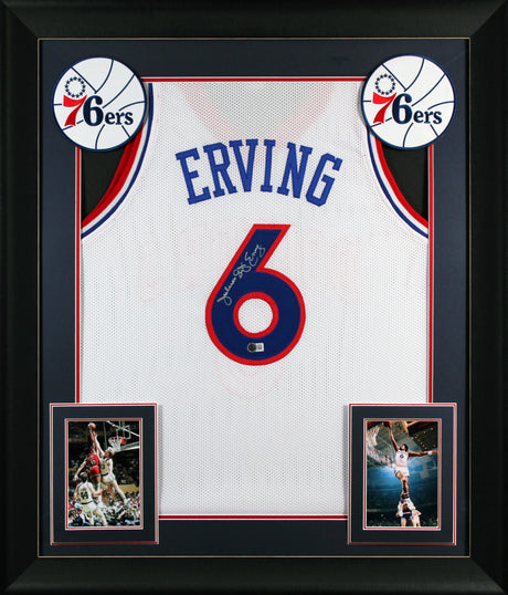 Julius "Dr. J" Erving Authentic Signed White Pro Style Framed Jersey BAS