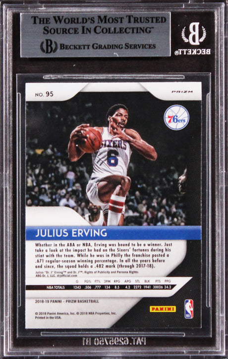 76ers Julius Erving Signed 2018 Panini Prizm Prizms Silver #95 Card BAS Slabbed