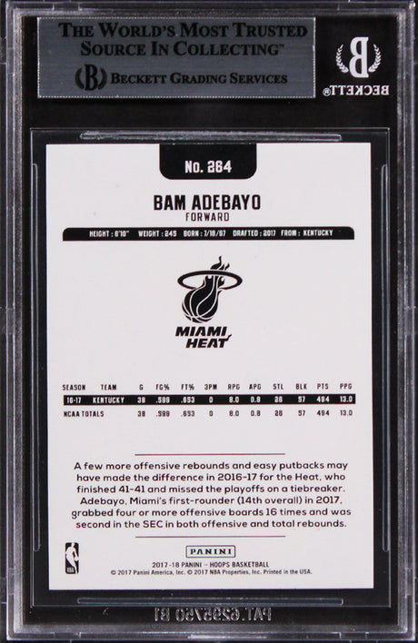 Heat Bam Adebayo Authentic Signed 2017 Hoops #264 Rookie Card BAS Slabbed