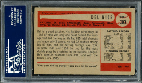 Del Rice Autographed 1954 Bowman Card #30 St. Louis Cardinals PSA/DNA #83941479