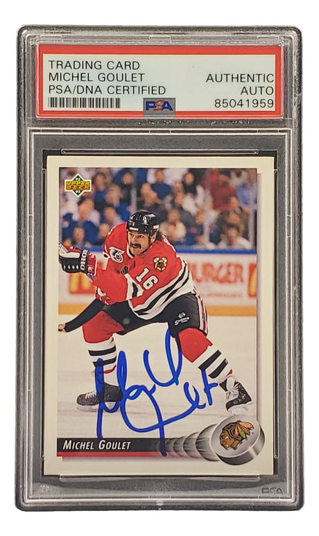 Very low stock (1 unit)$79Unit price /UnavailableMichel Goulet Signed 1991 Pro Set #50 Chicago Blackhawks Hockey Card PSA/DNA