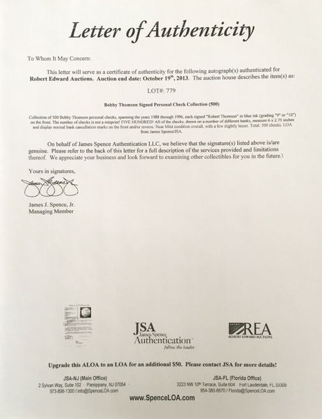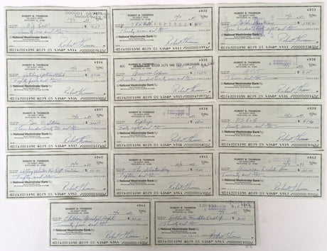 Bobby Thomson New York Giants Signed Checks 4931-4944 JSA