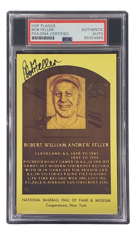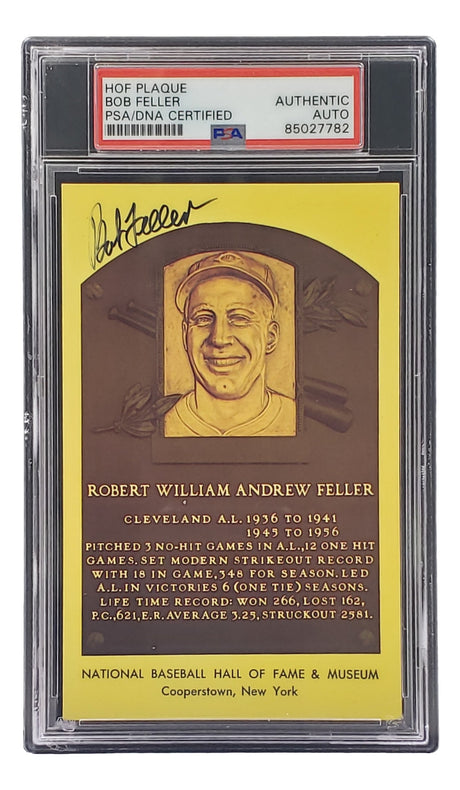 Very low stock (1 unit)$59Unit price /UnavailableBob Feller Signed 4x6 Cleveland Hall Of Fame Plaque Card PSA/DNA 85027781