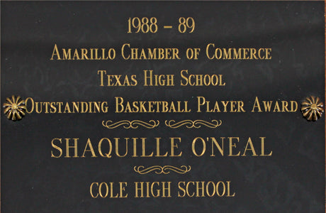 Shaquille O'Neal 1989 Texas HS Outstanding Basketball Player Award Plaque BAS W