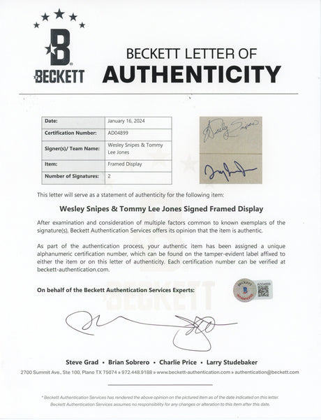 Wesley Snipes & Tommy Lee Jones U.S. Marshals Signed Framed Display BAS #AD04899
