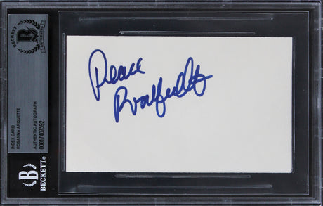 Very low stock (1 unit)$839Unit price /Unavailable Rosanna Arquette Crash "Peace" Authentic Signed 3x5 Index Card BAS Slabbed 5
