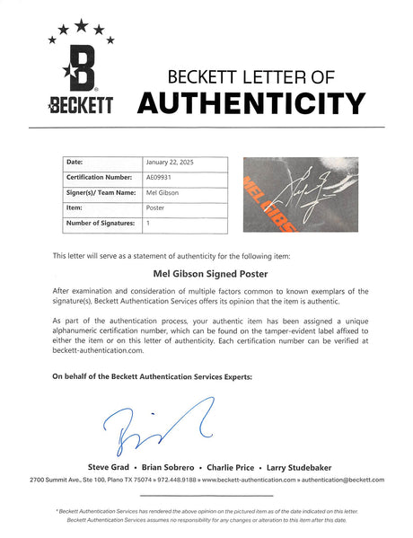 Mel Gibson Braveheart Authentic Signed 27x40 Poster Autographed BAS