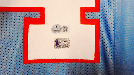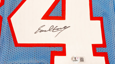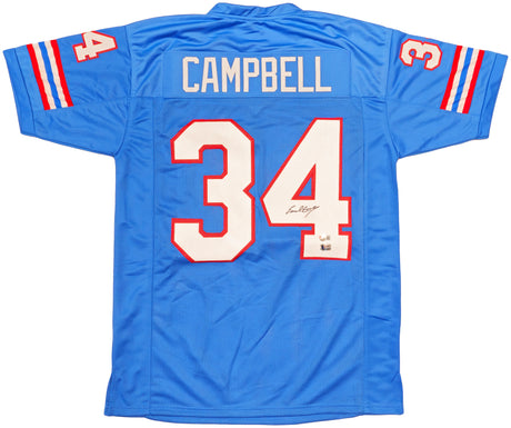 Houston Oilers Earl Campbell Autographed Blue Jersey Beckett BAS QR Stock #237061