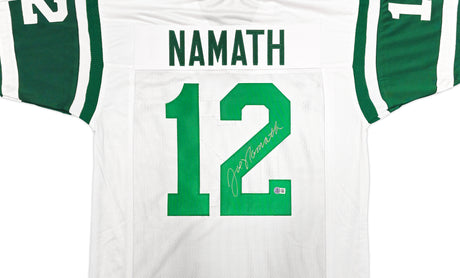 New York Jets Joe Namath Autographed Green Jersey Beckett BAS Witness Stock #237707