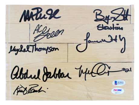Showtime Lakers (8) Magic, Kareem +6 Signed 8x10 Forum Floorboard PSA & BAS 1