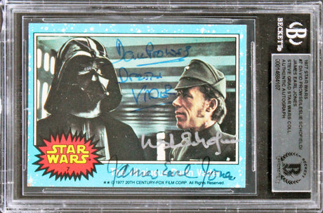 Star Wars (3) Prowse, Schofield & Jones Signed 1977 Star Wars #7 Card BAS Slab