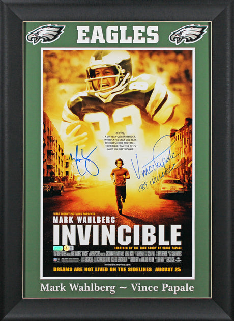 Mark Wahlberg & Vince Papale Invincible Signed 16x24 Framed Poster BAS #BP56174
