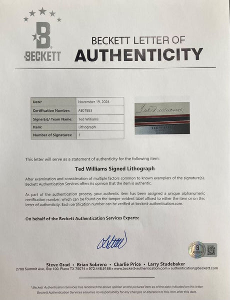 Ted Williams Signed Framed 16x20 Boston Red Sox Photo BAS LOA