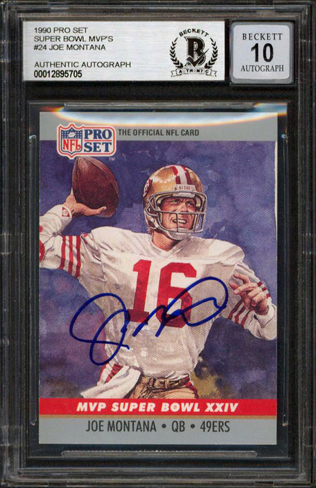 49ers Joe Montana Signed 1990 Pro Set MVPs #24 Card Auto Graded 10! BAS Slabbed
