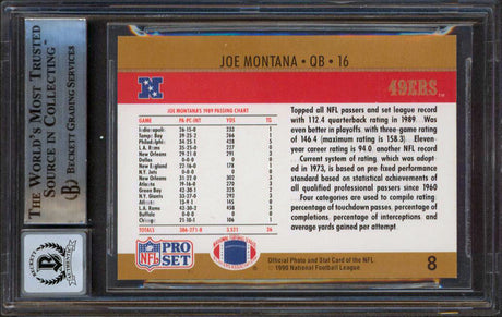 49ers Joe Montana Signed 1990 Pro Set #8 Card Auto Graded Gem 10! BAS Slabbed