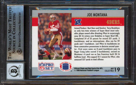 49ers Joe Montana Signed 1990 Pro Set MVPs #19 Card Auto Graded 10! BAS Slabbed