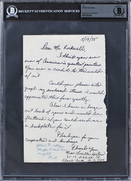 Norman Rockwell "Glad to oblige" Signed 5.5x8.5 1975 Letter BAS Slabbed