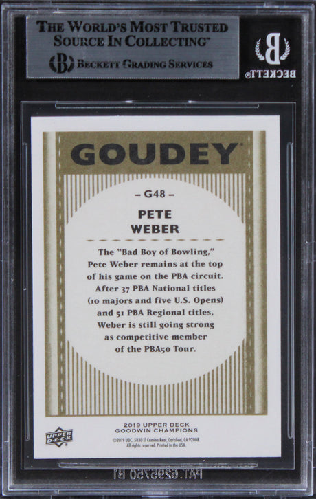 Very low stock (1 unit)$279Unit price /Unavailable Pete Weber Signed 2019 UD Goodwin Champions Goudey Royal Blue #96 Card BAS Slab