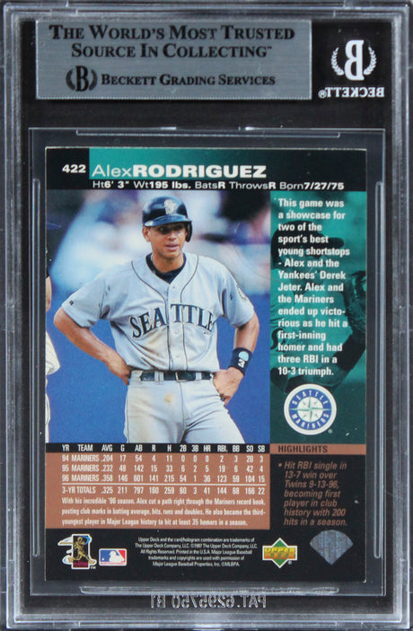 Mariners Alex Rodriguez Authentic Signed 1997 Upper Deck #422 Card BAS Slabbed