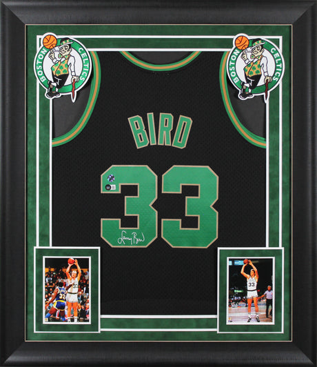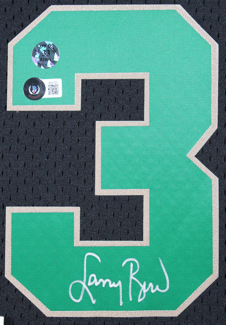 Celtics Larry Bird Authentic Signed Black M&N HWC Swingman Framed Jersey BAS Wit