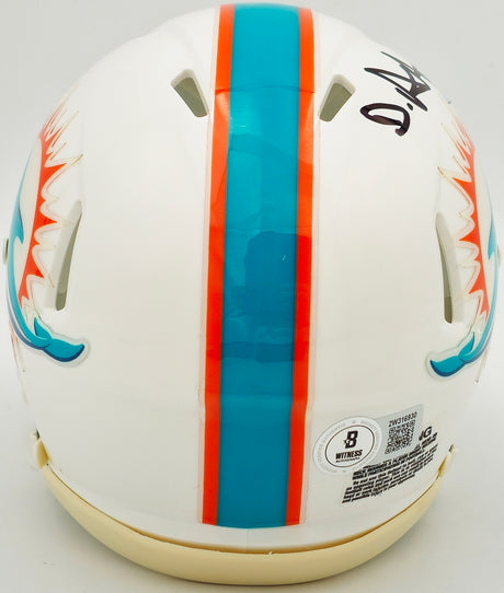 De'Von Achane Autographed Miami Dolphins White Speed Mini Helmet Beckett BAS Witness Stock #235091