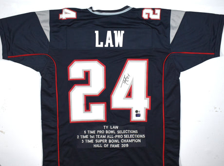 Ty Law Autographed Blue Pro Style Jersey - Beckett W Hologram *Black *Up