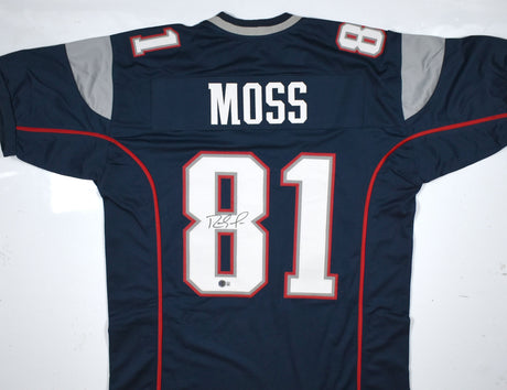 Randy Moss Autographed Blue Pro Style Jersey- Beckett W Hologram *Black *8