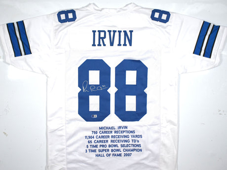 Michael Irvin Autographed White Pro Style Stat Jersey - Beckett W Hologram