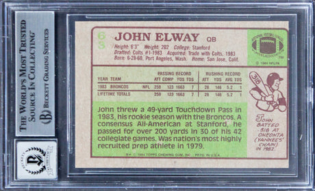Broncos John Elway "HOF 04" Signed 1984 Topps #63 Rookie Card Auto 10! BAS Slab