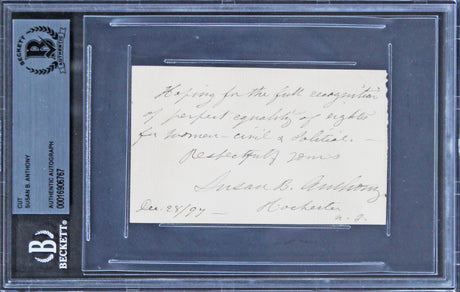Susan B. Anthony "Vote for Woman Suffrage" Signed 2.5x4 Cut Signature BAS Slab