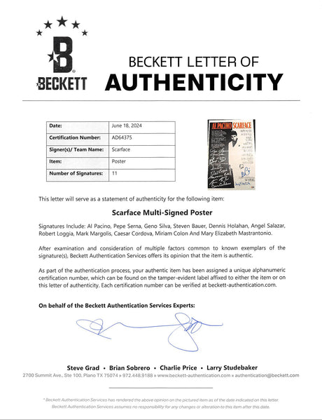 Scarface (11) Pacino, Bauer, Loggia +8 Signed 12x18 Framed Poster Photo BAS COA