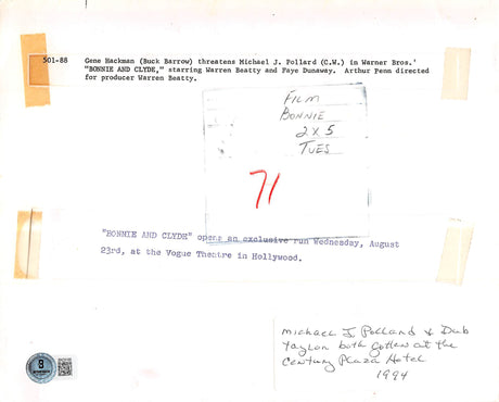 Michael J. Polland & Dub Taylor Bonnie and Clyde Signed 8x10 Photo BAS #BN29188