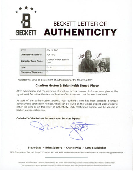 Charlton Heston & Brian Keith The Mountain Men Signed 8x10 Photo BAS #AD64470
