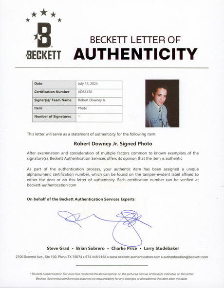 Robert Downey Jr. The Pick-up Artist Signed 7x10 Photo Autographed BAS #AD64450
