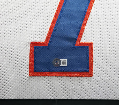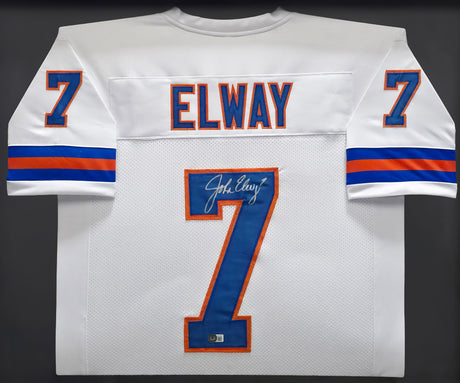 Denver Broncos John Elway Autographed Framed White Jersey Beckett BAS Witness Stock #253342