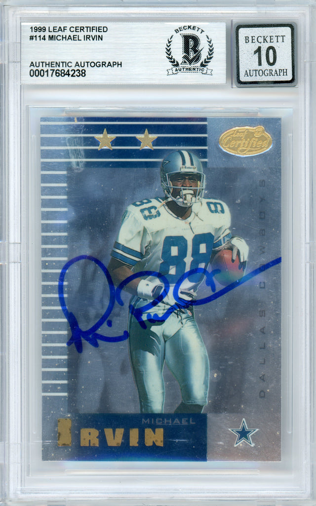1999 Leaf Certified #114 Michael Irvin Dallas Cowboys BGS Autograph 10