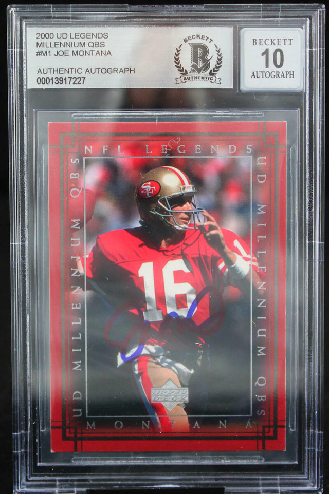 2000 UD Legends Millenium QBs #M1 Joe Montana Auto SF 49ers BGS Autograph 10 is backordered and will ship as soon as it is back in stock.