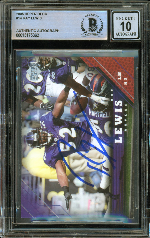 2005 Upper Deck #14 Ray Lewis Baltimore Ravens BGS Autograph 10