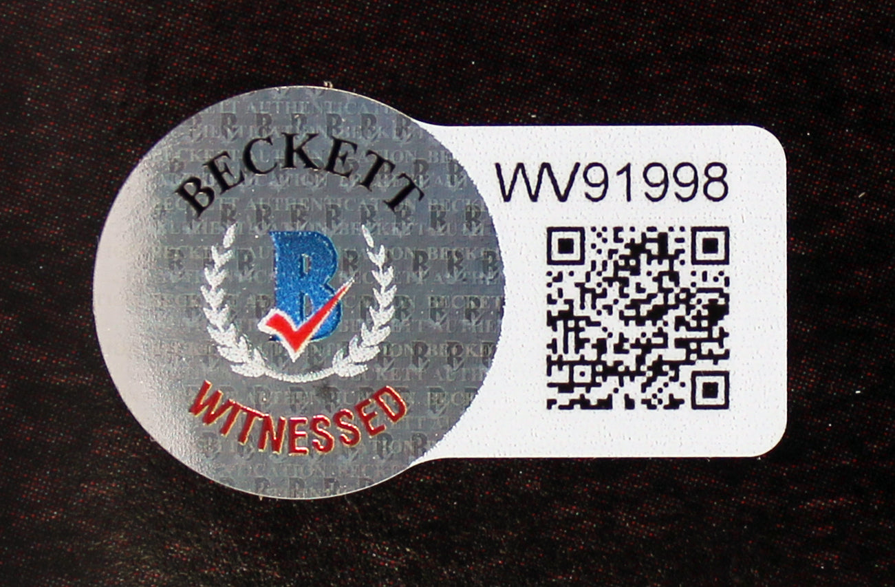 Certified by Beckett Authentication Services (BAS) under their Witnessed Protection Program, this autographed program guarantees authenticity. A BAS witness was present at the signing, and the item may include a scannable QR code hologram for easy online verification.