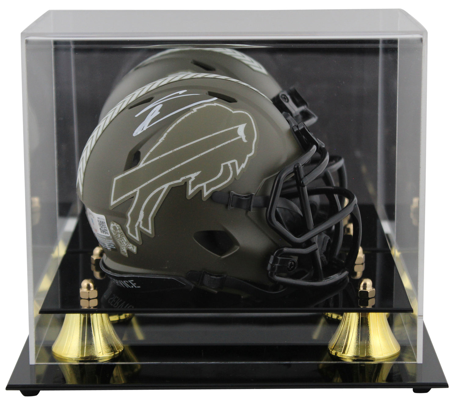 Own a piece of Buffalo Bills history with this Autographed Salute to Service Speed Mini Helmet signed by Stefon Diggs. This exclusive collectible includes a UV Mirrored Back Acrylic Display Case, making it the perfect centerpiece for any football fan or memorabilia collector.