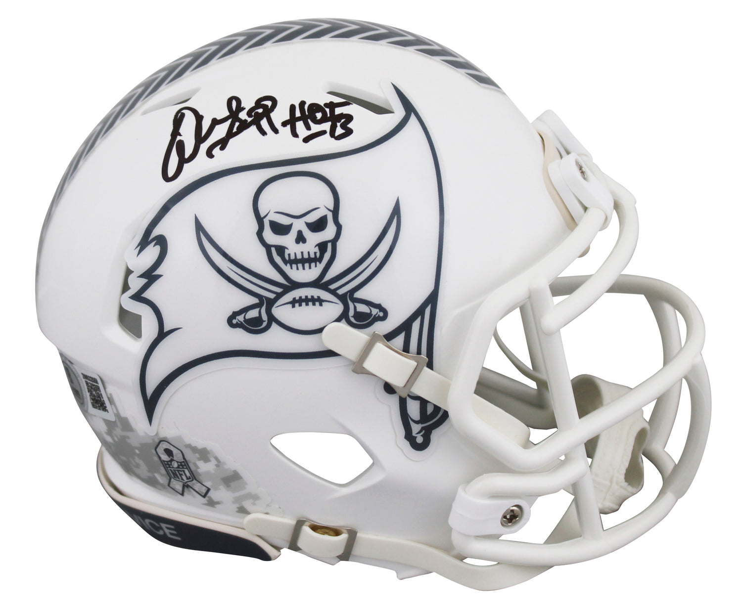Celebrate the legacy of one of the Tampa Bay Buccaneers' greatest defensive icons with this Autographed Alternate 2024 Salute To Service III Speed Mini Helmet, featuring a bold "HOF 13" inscription by Warren Sapp. This collectible is housed in a striking UV mirrored acrylic display case, making it a standout piece for any sports memorabilia collection focused on NFL legends or Tampa Bay Buccaneers history. A Hall of Famer known for anchoring the Bucs' fearsome defense and helping lead them to victory in Super Bowl XXXVII, Sapp remains one of football’s most dominant defensive tackles — and this mini helmet captures that enduring legacy.