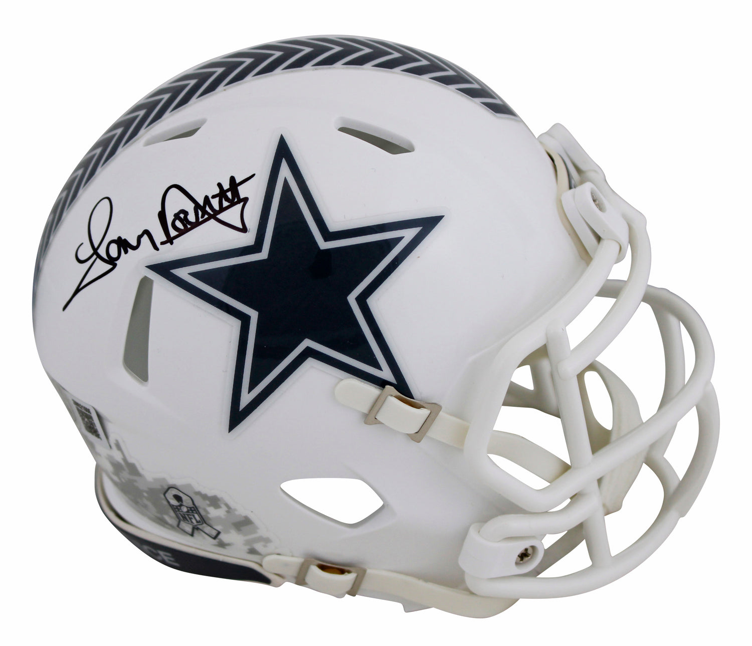 Own a piece of Dallas Cowboys history with this Autographed 2024 Salute To Service III Speed Mini Helmet, personally signed by Tony Dorsett. A must-have for serious collectors and devoted Cowboys fans, this unique item honors both the legendary running back and the NFL’s commitment to service. Authenticated by Beckett Authentication Services (BAS), you can be confident in the 100% authenticity of this signed memorabilia.