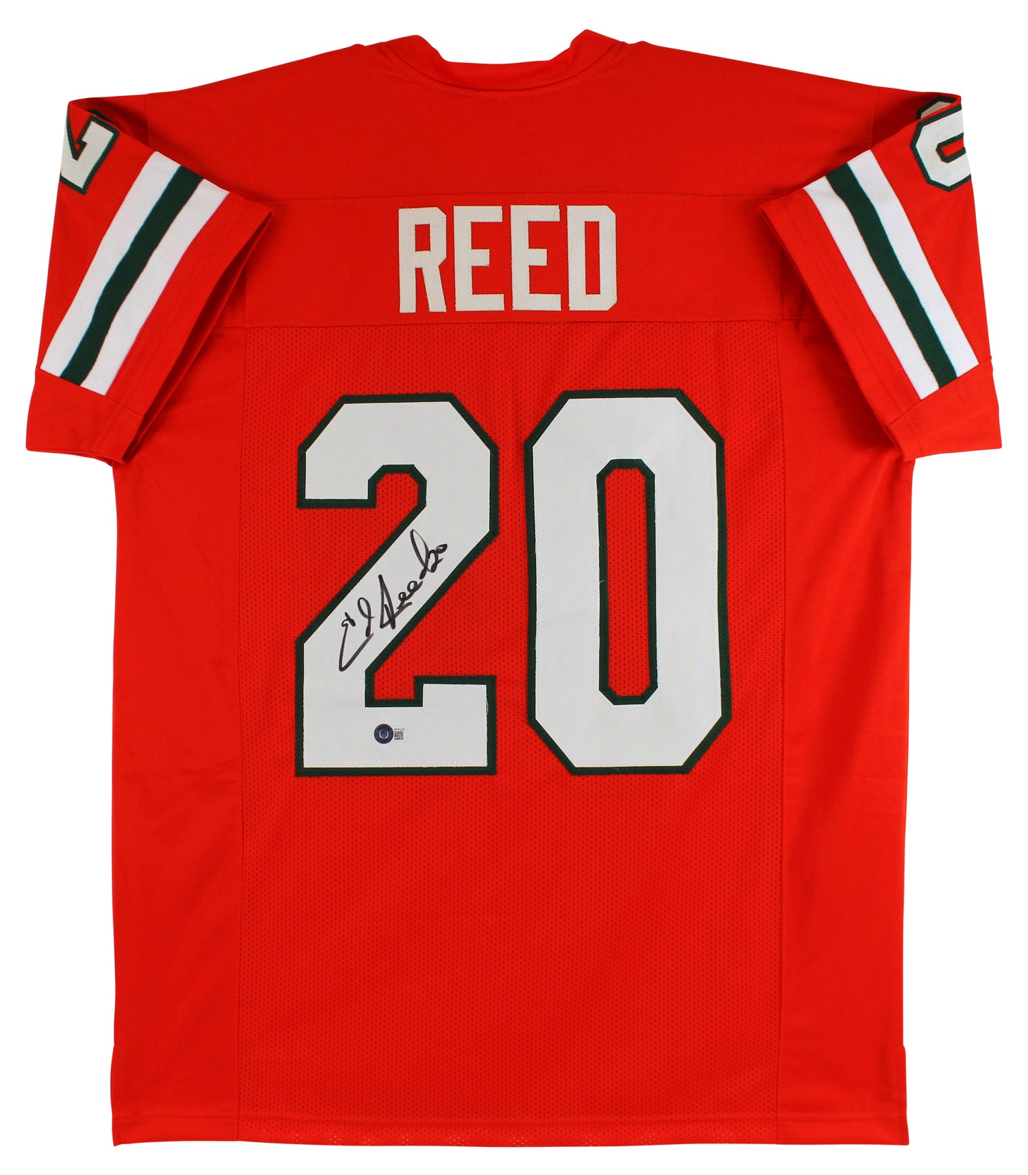 Own a piece of Miami Hurricanes history with this Ed Reed Autographed Orange Pro-Style Jersey. A legendary safety and Hall of Famer, Ed Reed was a game-changer at the University of Miami before dominating the NFL. This signed jersey is a must-have for Hurricanes fans and serious collectors alike.