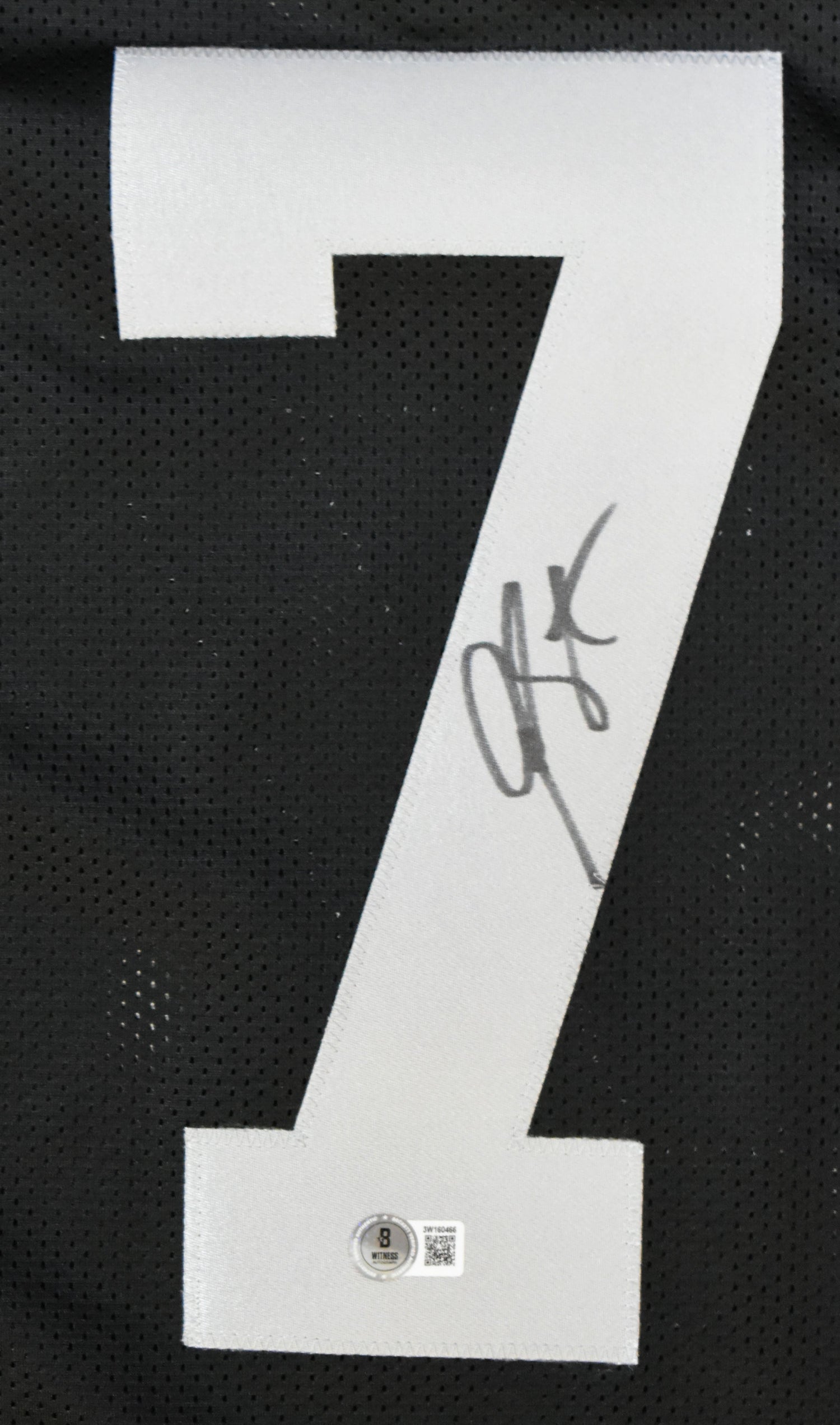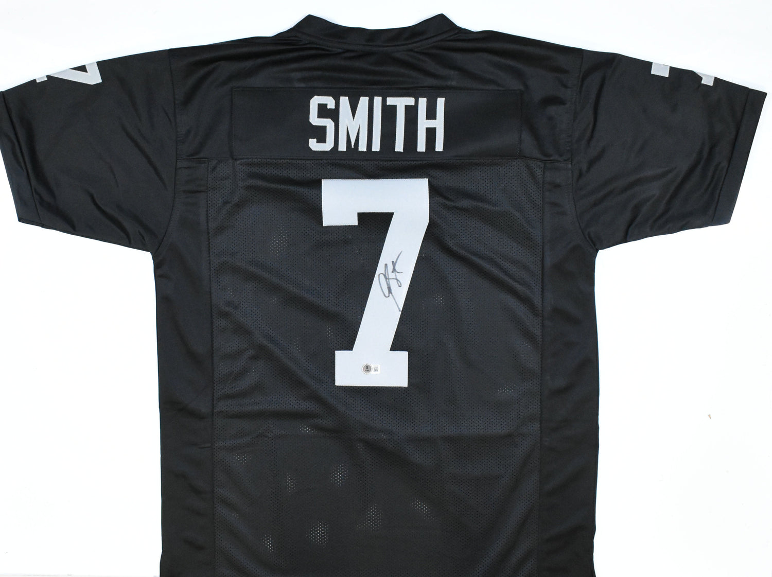 Own a piece of football history with this hand-signed Geno Smith custom jersey—perfect for Las Vegas Raiders fans and sports memorabilia collectors. While this is not an official NFL jersey and does not feature any tags, logos, or emblems, it is a high-quality, custom-made authentic style jersey crafted with stitched letters and numbers, designed to look and feel great on display. Geno Smith, known for his dynamic presence on the field and his resurgence with the Seattle Seahawks before joining the Las Vegas Raiders, personally signed this jersey in a verified session—making it a valuable addition to any collection. Every jersey comes with trusted authentication from Beckett Witnessed Authentication, ensuring its long-term collectible value. Whether you're building a Las Vegas Raiders memorabilia wall or searching for the perfect sports gift, this Geno Smith signed jersey delivers authenticity, pride, and investment-worthy appeal.