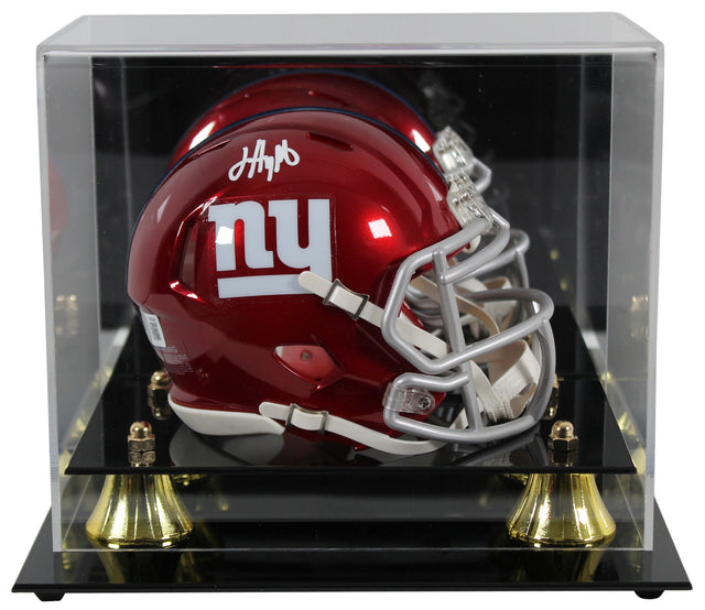 Own a piece of New York Giants history with this Jalin Hyatt Autographed Alternate Flash Speed Mini Helmet, complete with a UV Mirrored Back Acrylic Display Case. This collectible is a must-have for Giants fans and memorabilia enthusiasts, offering both authenticity and stunning presentation.