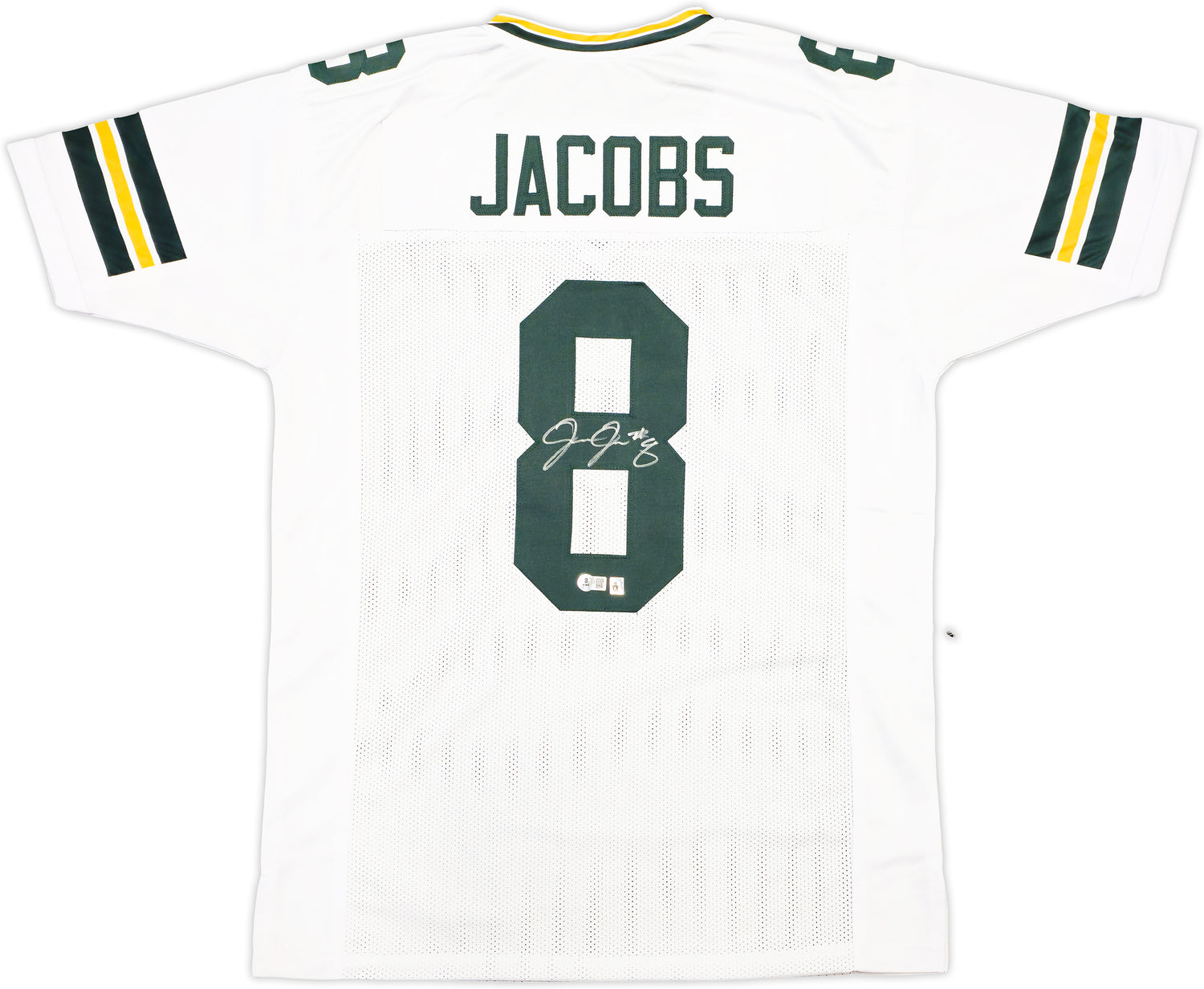 Green Bay Packers Josh Jacobs Autographed White Jersey Beckett BAS Witness Stock #229522