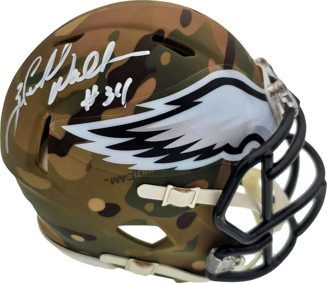 Own a piece of football history with this Philadelphia Eagles Speed Camo Mini Helmet hand-signed by Herschel Walker. A standout addition to any collection, this mini helmet showcases a unique camo design, making it a one-of-a-kind collectible for Eagles fans and sports memorabilia enthusiasts.