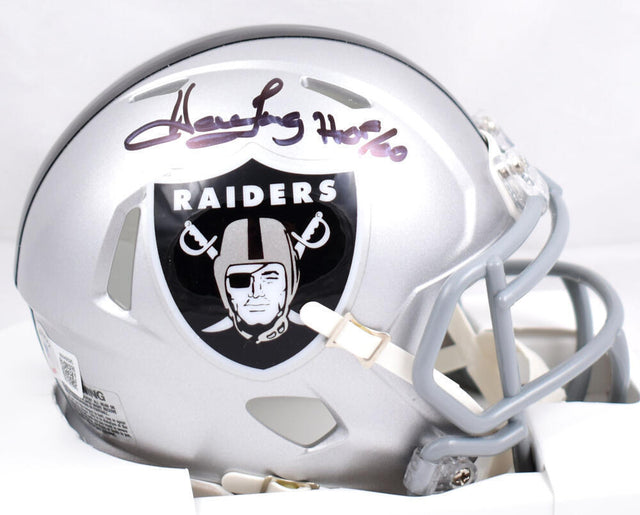 Own a piece of football history with this Howie Long autographed Riddell Speed Mini Helmet, signed by the legendary Raiders Hall of Famer and inscribed with HOF. Perfect for collectors and die-hard fans of the Silver and Black, this signed mini helmet is a must-have addition to any memorabilia collection.