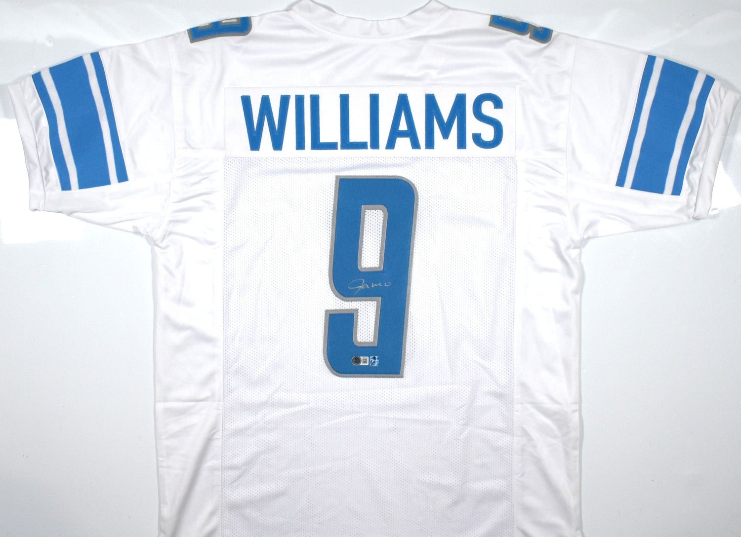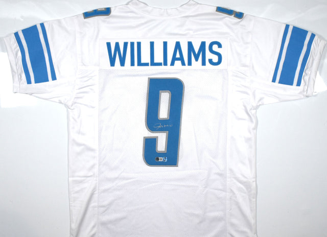 Jameson Williams Autographed White Pro Style Jersey - Beckett W Hologram *Silver is backordered and will ship as soon as it is back in stock.